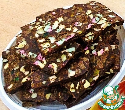Во-первых, он нетрудный, во-вторых, шоколадный, а шоколад у нас в почете))) В первый раз сделала просто с грецкими орехами, и всем очень понравилось. В эти выходные делала "на бис" в два раза больше, только половину сделала с грецкими, как и в прошлый раз, а половину с миндалем и вяленой вишней. Это очень вкусно! Еще украсила белым шоколадом, растопив его и разлив сверху вилкой.