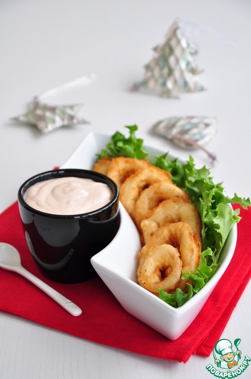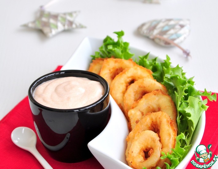 Рецепт «Кольца кальмаров в кляре с икорным соусом»: