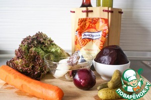 Подготовить продукты. Свеклу и морковь предварительно отварить или запечь. Овощи остудить.