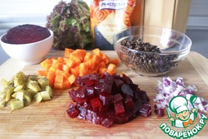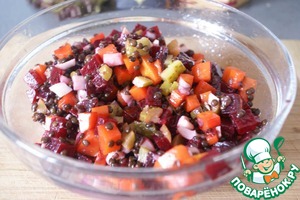 Рецепт «Винегрет с черной чечевицей и кальмарами»: