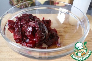 Свеклу выложить в салатник и заправить соусом.