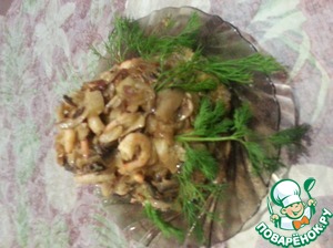 Описание:Этот салатик делается быстро, а получается очень вкусно. Особенно он нравится моим мужчинам - мужу и сыну. Они главные ценители на кухне. Очень вкусный салат!