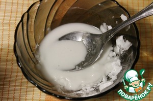 Крахмал залить холодной водой: 1 ст. л. крахмала и 1 ст. л. воды
