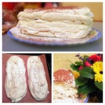 Предлагаю попробовать восхитительный торт. Настоящий зимний подарок. Нежный ароматный крем напоминает пушистый снежок, а хрустящие прослойки меренги - звонкие льдинки. Ну чем не подарок от самой Снежной королевы? Готовить его совсем не хлопотно и занимает не очень много времени. если не считать времени выпекания белковых меренг, но ведь они пекутся самостоятельно, тихо пыхтя в духовке, без вашего участия. Мне этот рецепт еще понравлся и тем, что приготовить его можно заблаговременно до праздника, и не отвлекаться в предпраздничные часы на изготовление десерта. Вам просто надо будет его вынуть из холодильника за пару-тройку минут до подачи, и ваши гости будут в восторге