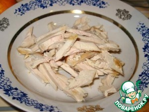Куриное филе нарезать соломкой.