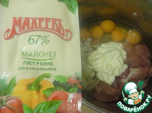 Туда же отправляем майонез "Махеев" и соль.