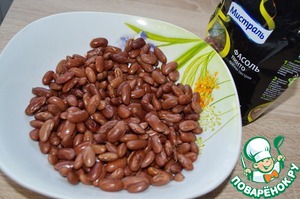 Заранее замочите фасоль на 4-8 часов (лучше на ночь), затем залейте свежей водой и варите до мягкости фасоли. Когда фасоль сварилась, откидываем ее на дуршлаг, остужаем.