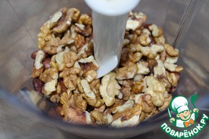 Фасоль и грецкие орехи пропустите через мясорубку или взбейте в блендере до однородности.