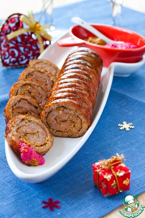 Какой же праздничный стол без мясной нарезки? Согласна, никакой)) Приготовьте этот рулет заранее, можно в нескольких вариантах, и на магазинную колбасу тратиться не придется. Да и вряд ли кто-то посмотрит в ее сторону, если рядом будет стоять вот такой красавец.)))