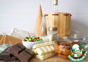 В массу также можно ввести сахарную пудру, ваниль, орехи, ароматические эссенции, какао или растопленный шоколад, шоколадную или кокосовую стружку, сгущенку или сливочное масло, или даже заменить ее на мороженое (если у вас есть место в морозилке для хранения всей конструкции), в общем, все, что вам придется по вкусу. Условие, по-прежнему, одно: масса должна загустеть и не выпасть при переворачивании. -