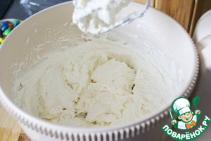 Взбить творог со сливками. Полученная творожная масса будет использоваться в качестве начинки для конусов.