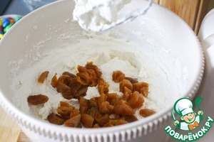 Поскольку я не использую сахар, в творожную массу я добавила замоченную в горячей воде курагу в качестве подсластителя.