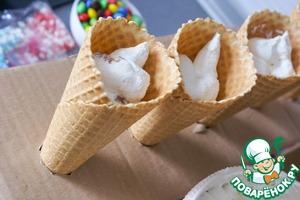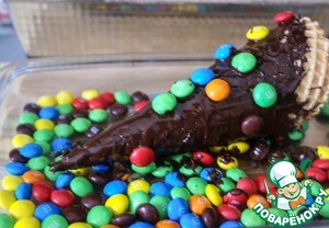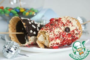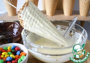 Растопить шоколад и обмазать им застывшие конусы. Дать шоколаду немного застыть, но так, чтобы он все еще был липким.