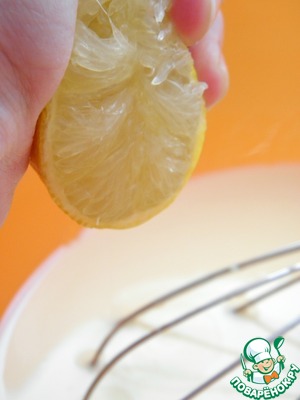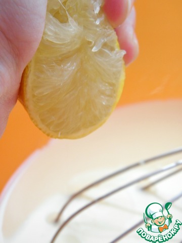 Далее выжимаем сок из лимона и выливаем в молоко. Сладость-кислинку можете регулировать по своему вкусу. Но чем меньше лимонного сока - тем более жидким получается крем в итоге.