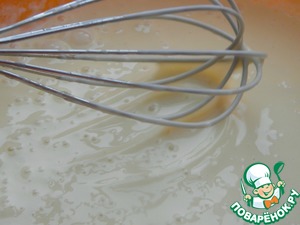 Немного поработаем венчиком и крем станет однородным и немного загустеет. Но все равно будет текучим. Поэтому, если будете использовать разъемную форму, в герметичности которой не уверены, лучше застелите ее пленкой или фольгой.