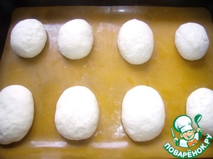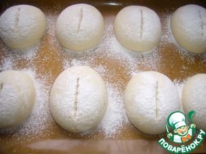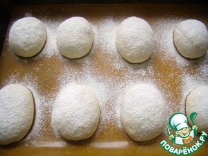 Посыпать мукой и дать постоять в теплом месте минут 20.
