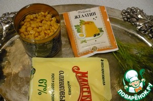 • Пока отложим нашу рыбку в холодильник, а сами займемся озером. Это наши ингредиенты для него.