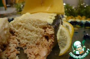 • В первом варианте мы будем вынимать кости через верх. На сайте есть рецепт, где пошаговый показ, как это делается. http://www.povarenok .ru/recipes/show/381 54/... Удаляем жабры и кладем вместо них цедру лайма.