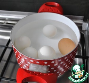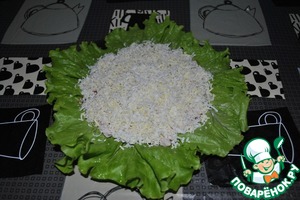 2 слой: яйца через мелкую терку (1 яйцо оставить для украшения)..