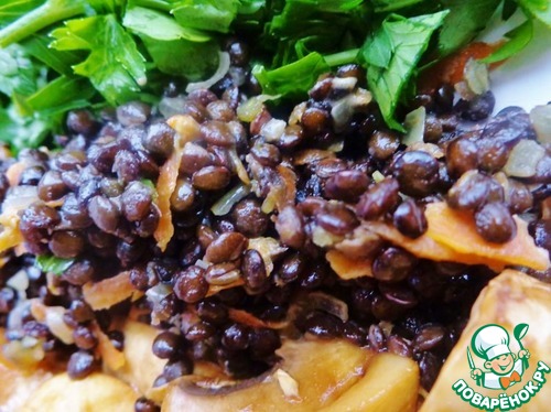 - Чечевица (я брала чёрную, любая, которая не разваривается) — 200 г