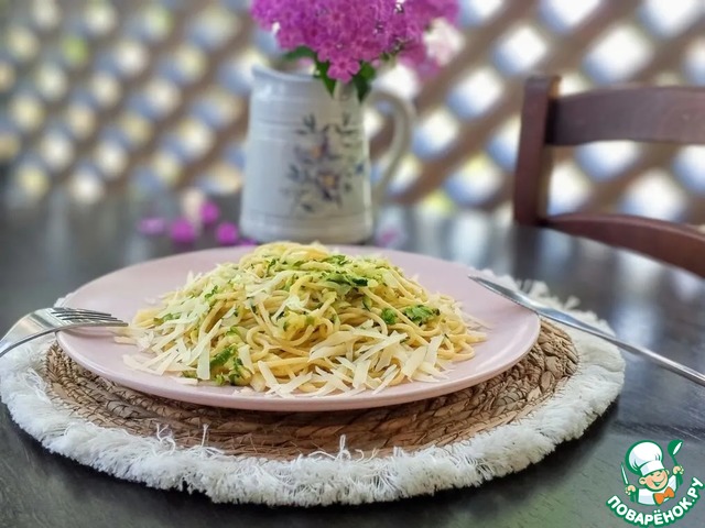 Варим до состояния al dente пасту и добавляем наш зеленый соус, последний штрих - тертый пармезан, и обед готов