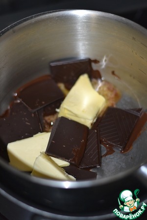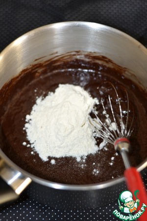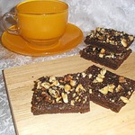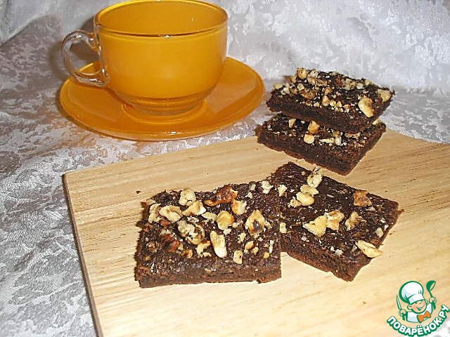 Печь брауни 30 мин. при темп-ре 150 град. Вынуть, слегка охладить, снять бумагу, нарезать на треугольники.