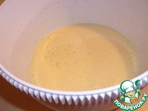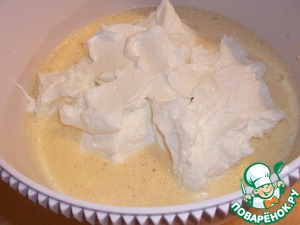 Оставшиеся 100 г сахара, ванильный пудинг, цедру и сок половины лимона, 5 яиц перемешать до гладкого состояния. Я взбила миксером на небольших оборотах.
