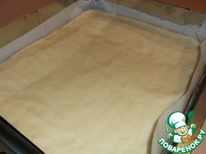 Противень 32х37 см с высокими (!) бортами застелить бумагой для выпечки.