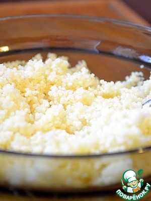 Тем временем кус-кус, впитавший жидкость, открываем и разрыхляем вилкой.