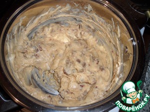 Приправляем по вкусу солью и перцем, добавляем мускатный орех, тертый сыр, мелко нарезанные мясные продукты, грибы. Все, что нужно из холодильника пристроить. Закрываем пленкой и убираем в холодильник на 1 час, чтобы масса застыла. Этот час во времени приготовления не учитывала.
