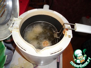 Раскаляем масло во фритюрнице и обжариваем крокеты.