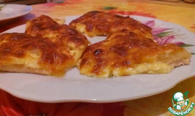 • Посыпаем сыром филе, причем лучше каждое отдельно, на мой взгляд, так проще подавать их потом.