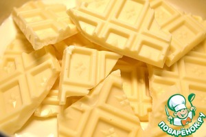 Отдельно перемешать 400 г творога, 250 г сметаны миксером, постоянно мешая, вливаем белый шоколад, сгущенное молоко. Отдельно растапливаем 20 г желатина на водяной бане. Добавляем желатин в подготовленную смесь. Также я выдавила сок половины лимона, причем так, чтобы частички лимона тоже попались, я люблю кусочки живых фруктов.