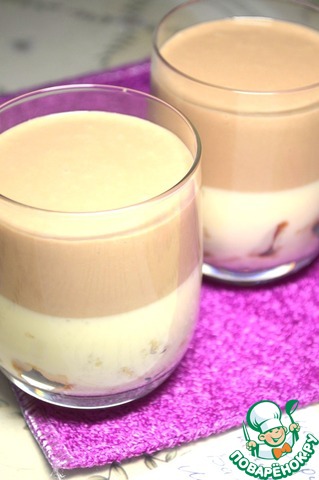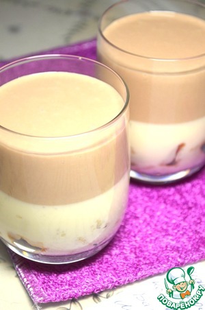 Достаем форму с бисквитом и бокалы, наливаем темное суфле, убираем еще на 4 часа в холодильник.
