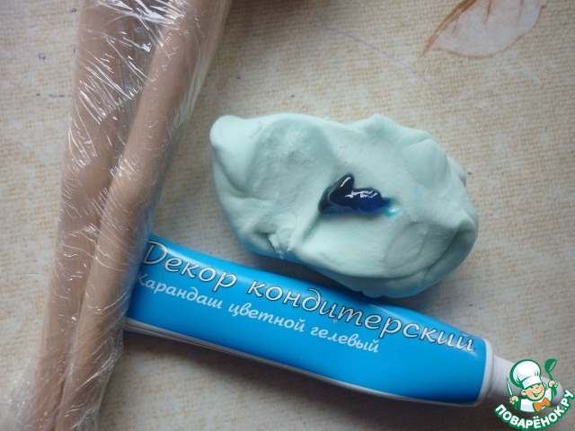 Оставшуюся мастику подкрасить голубой пищевой краской.