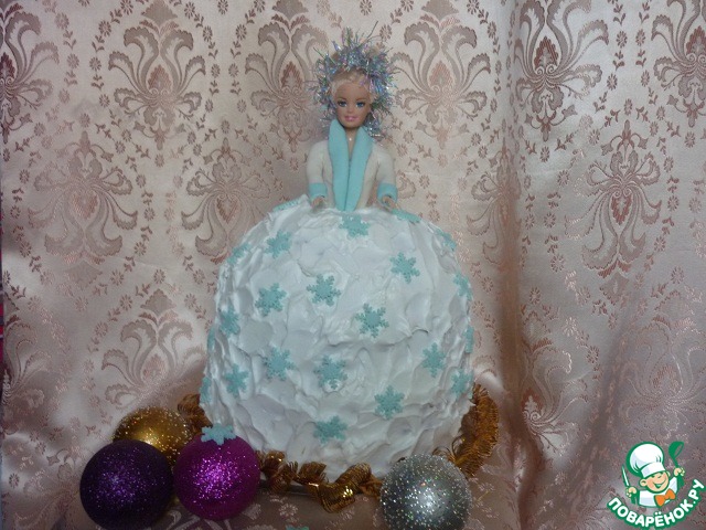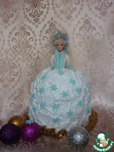Уже давно дочки уговаривают меня испечь торт-куклу. Я долго выбирала, в каком цвете и какого фасона придумать платье, но тут мы прочитали книжку про "Снежную Королеву", и решение пришло само собою.