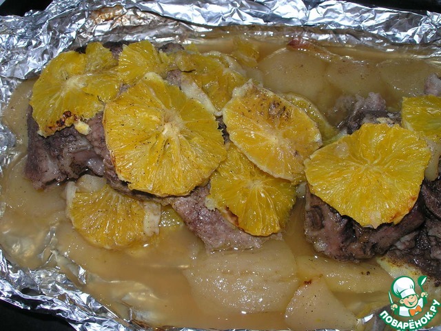 Свинина, запеченая в фольге с апельсинами.