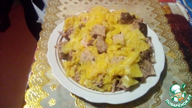 Сверху уложить мясо.