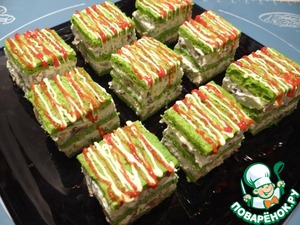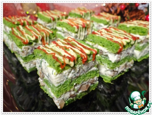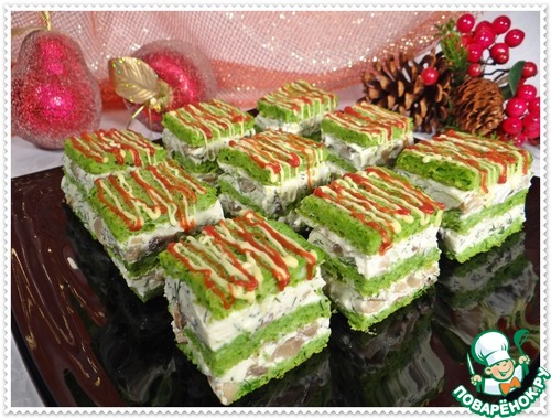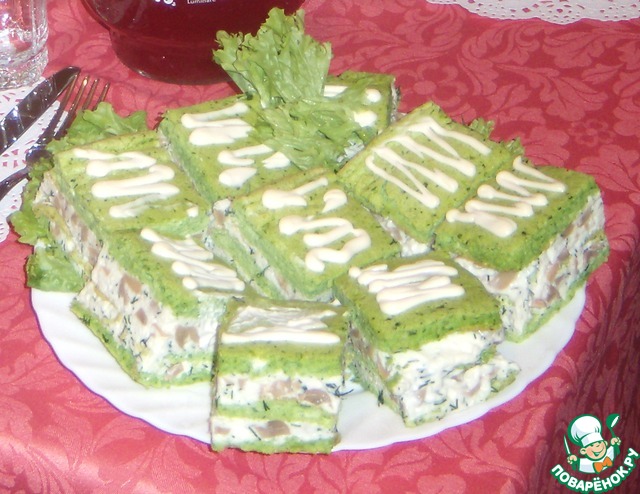 Закуска "Шпинатные кубики" с сырно-грибной прослойкой