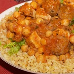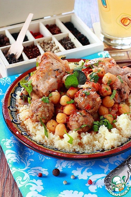 Курица с нутом и мясными шариками с булгуром в томатном соусе. Это блюдо просто пропитано восточным колоритом - булгур, нут, мята, кинза, вкуснейшие говяжьи фрикадельки с семолиной... ну до чего же приятная компания! Необыкновенно вкусное и, что немаловажно, красивое блюдо. Если вам нужен сытный обед или ужин - этот рецепт то, что надо. Рецепт адаптирован к мультиварке.