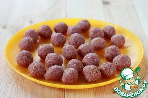 Скатайте шарики по 10 гр каждый, величиной чуть больше лесного ореха.