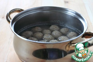 Подержите на огне томатный соус пару минут и всыпьте мясные шарики, потомите их в соусе еще 2 минуты