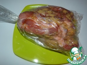 Положить в пакет (можно сразу в пакет для запекания), поставить в холодильник на несколько часов (чем больше, тем лучше, я оставляю на ночь).