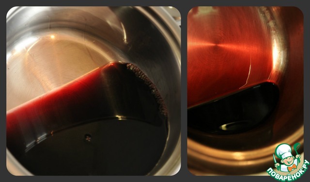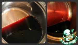 Вино. В зависимости от того, какой консистенции блюдо вы хотите получить (больше похожее на суп или же наоборот, погуще), нужно будет уваривать вино или нет. Мне хотелось погуще, поэтому в другой кастрюльке, на маленьком огне я поставила выпариваться вино. Вот каким оно стало — таким густым и концентрированным.