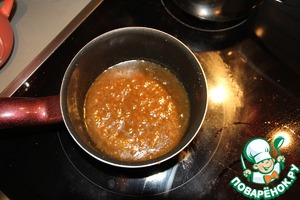 В кастрюльке увариваем соус, добавляем чуточку муки или крахмала для загустения.
