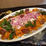 - Лук репчатый (лук красный и лук зеленый для оформления) — 1 шт