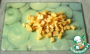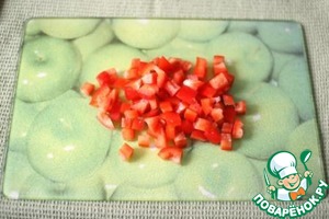 Манго очистить от кожицы, удалить косточку. Нарезать кубиками.