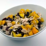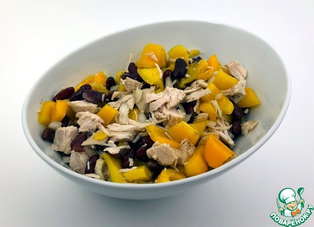 Интересный по составу салат, сытный, но не тяжелый. Вкус, пожалуй, на любителя, не всем нравится сочетание птицы и фруктов. Думаю, этот рецепт вполне подойдет и для праздничного стола!
