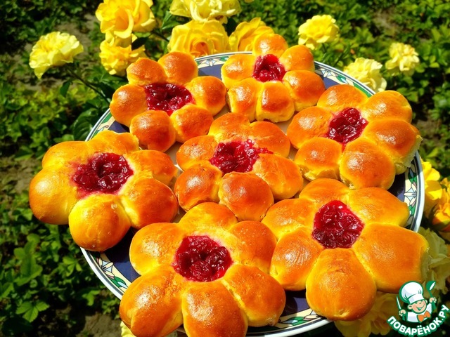 Булочки "Цветочки" с вишневой начинкой