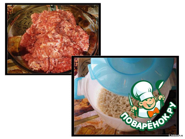 • Сделать смесь для фарширования. Для этого необходимо перемешать мясной фарш, рис, пассерованные овощи, посолить, поперчить. Нафаршировать перцы